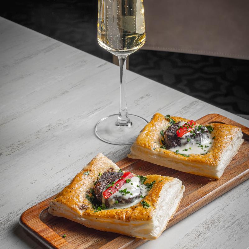 Hand-cut tenderloin, with rosemary potatoes, roasted broccoli and bleu cheese velouté | Add Garlic Mushrooms +$5.00